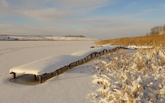 Обои Причал для лодок на замерзшем озере