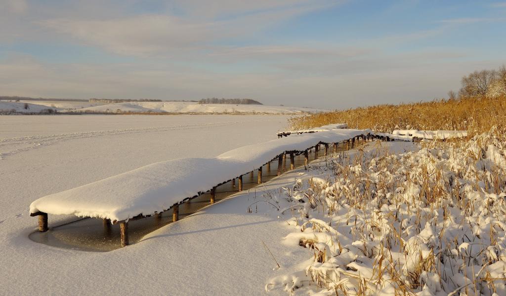 Обои Причал для лодок на замерзшем озере