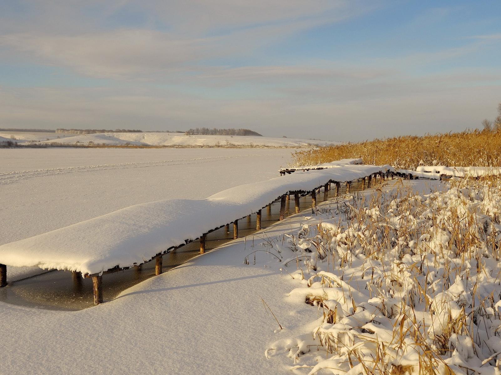 Обои Причал для лодок на замерзшем озере