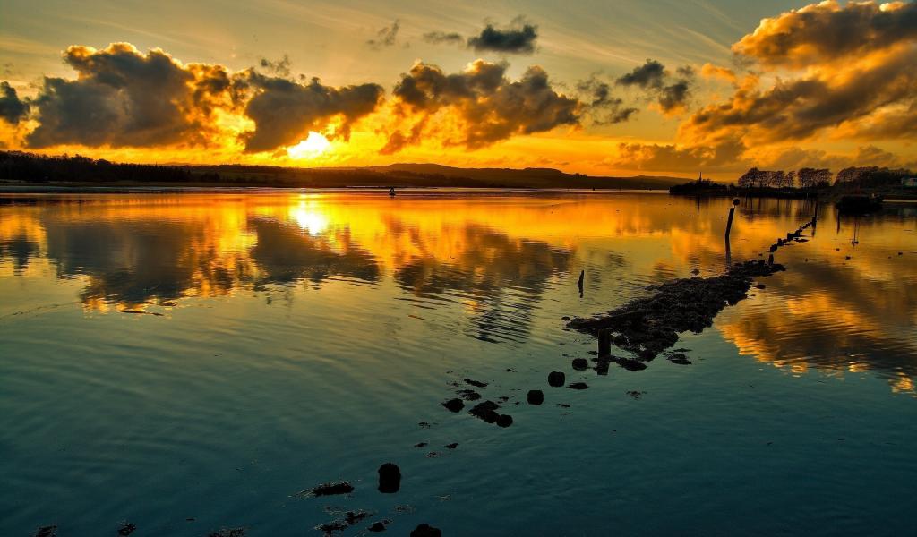 Обои Огненный закат отражается в озере