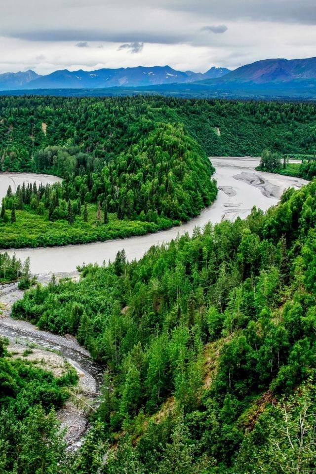 Обои Ручей впадает в реку среди тундры