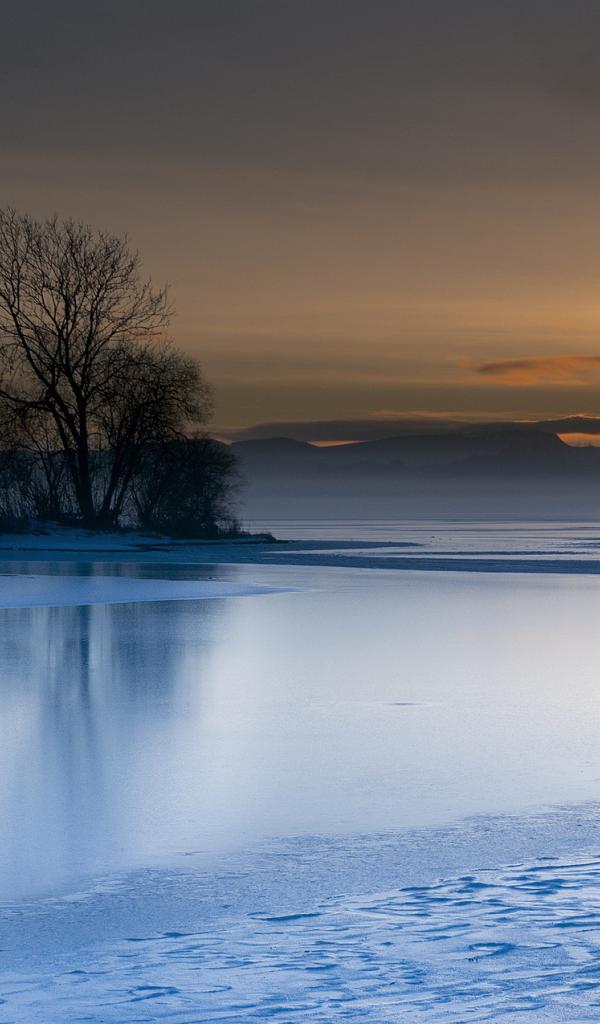 Обои Закат над голубым озером