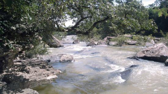 Обои Каменистая река с деревьями на берегу