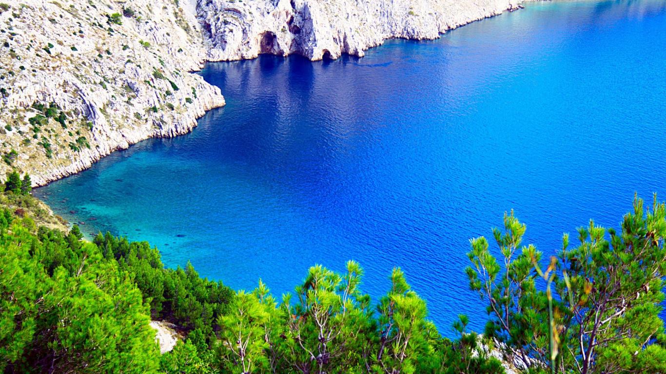 Обои Голубое озеро среди скал