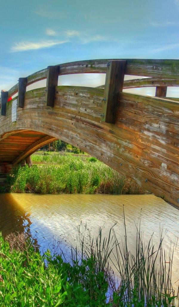 Обои Деревянный мост через реку