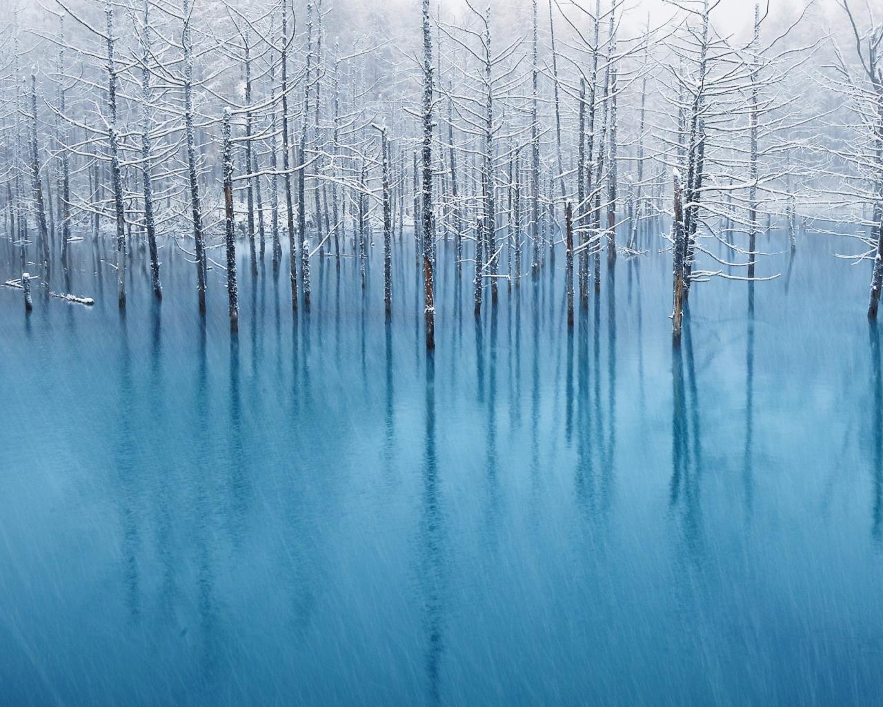 Обои Пруд в снегу