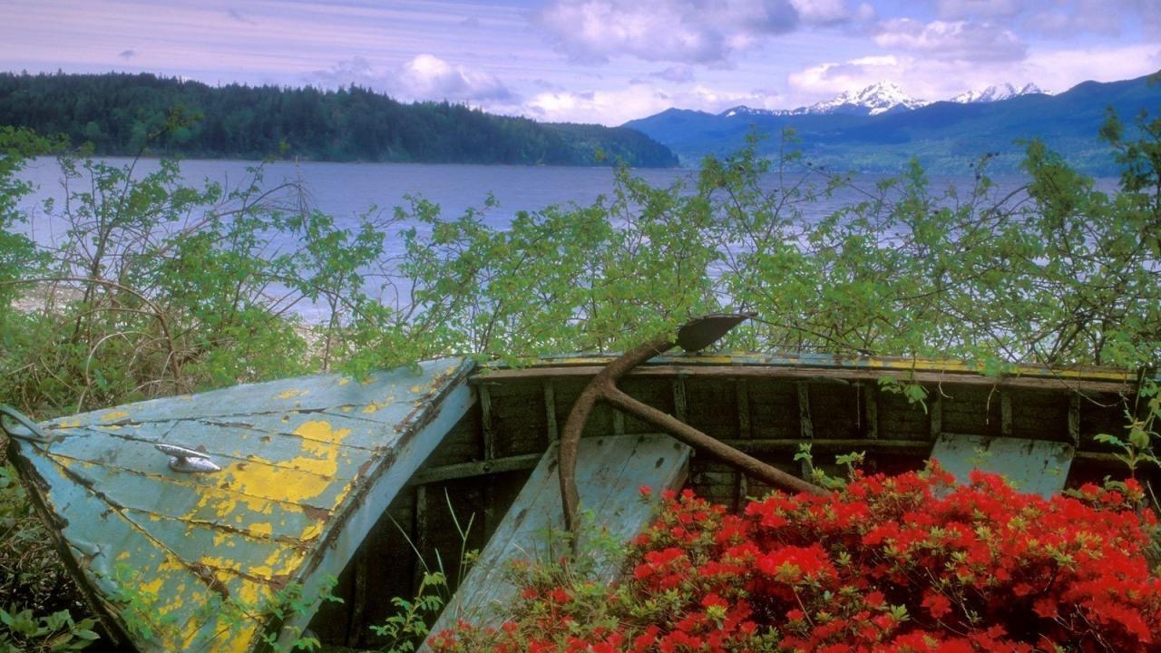 Обои Заброшенная лодка с якорем