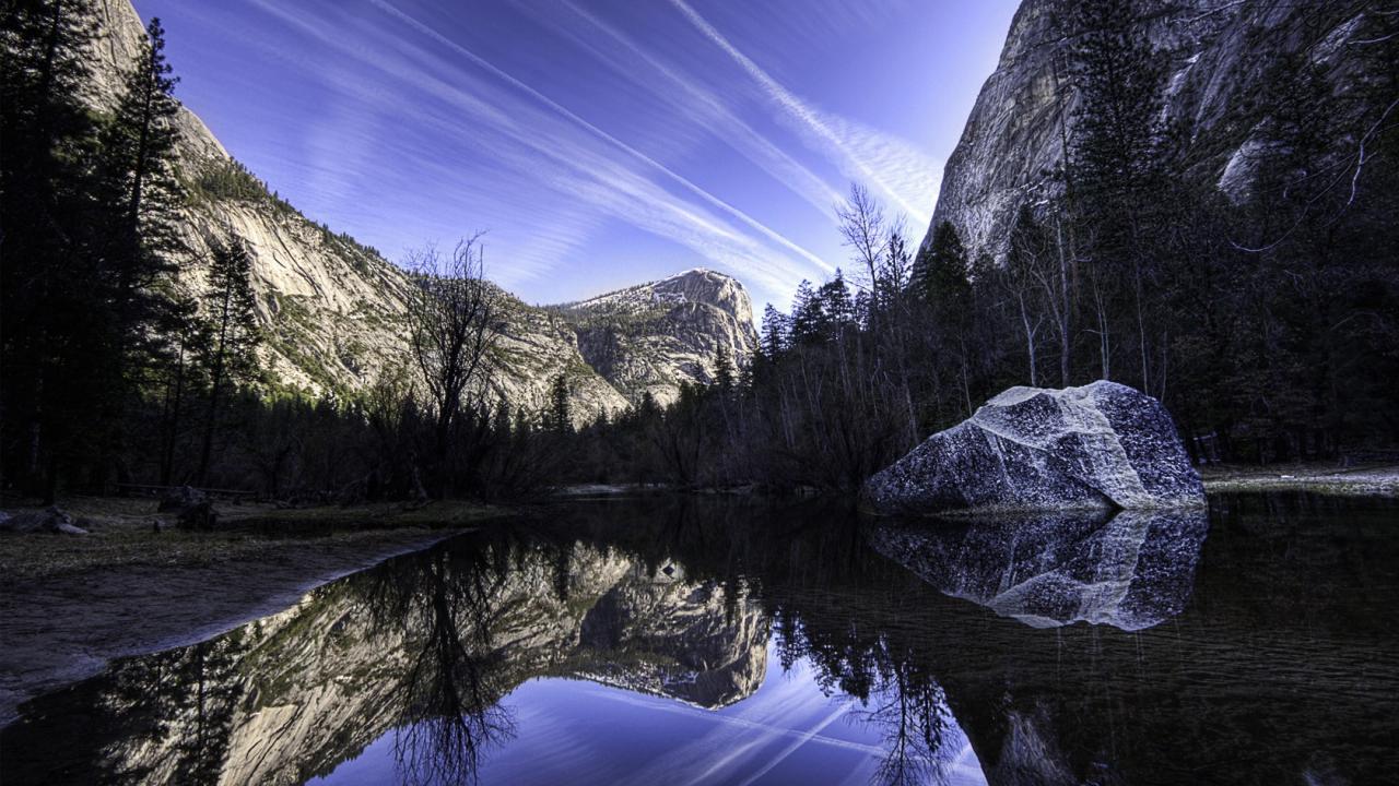 Обои Горное озеро с камнем