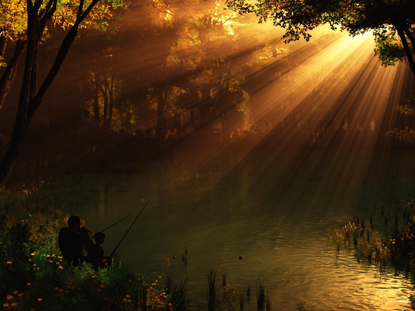 Обои Рыбаки в солнечных лучах