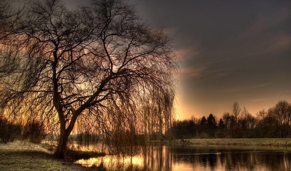 Обои Голое дерево у озера