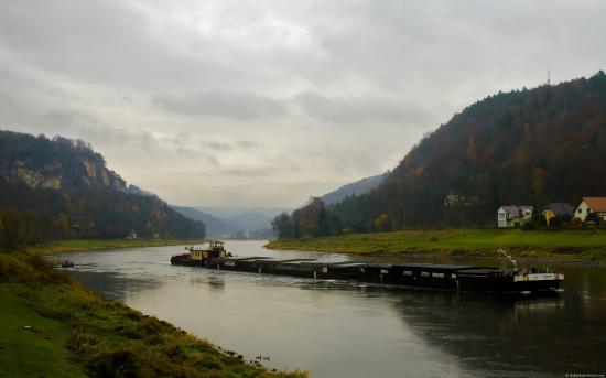 Обои Баржа на реке
