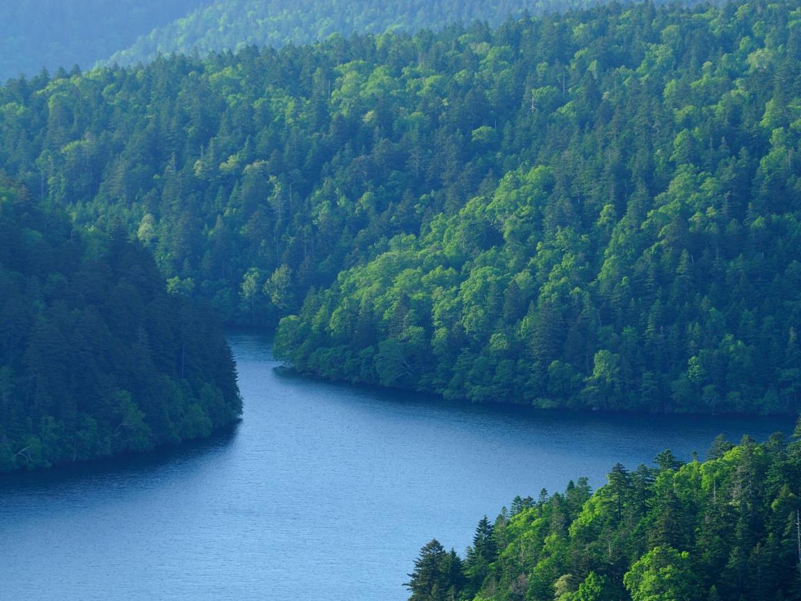 Обои Лес у большой реки