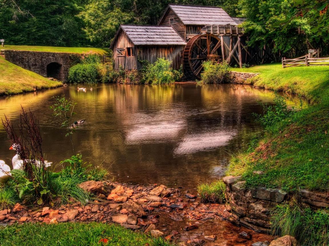 Обои Мельница у реки
