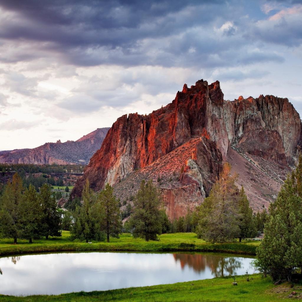 Обои Озеро у подножия красной скалы