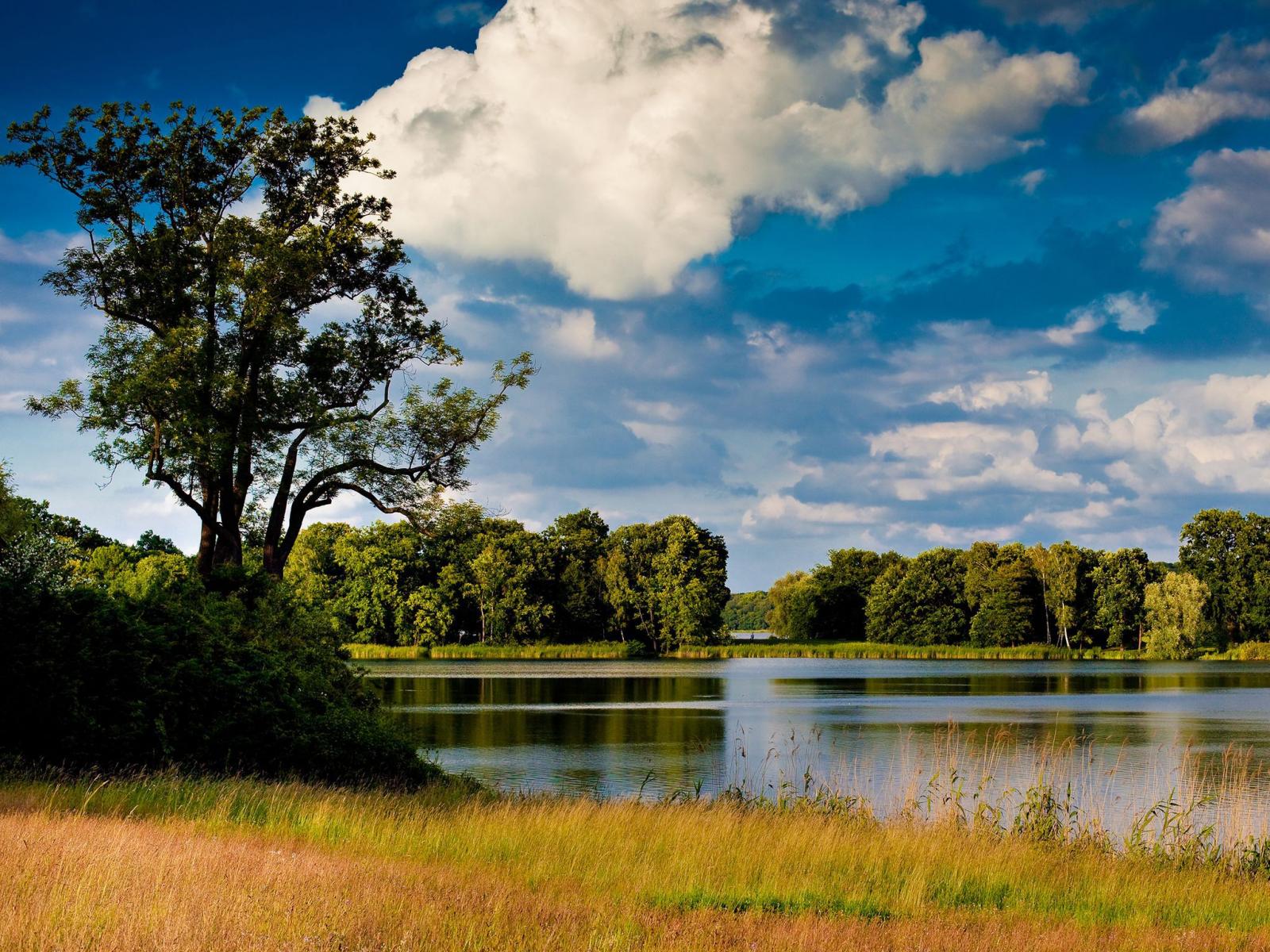 Обои Озеро среди лугов