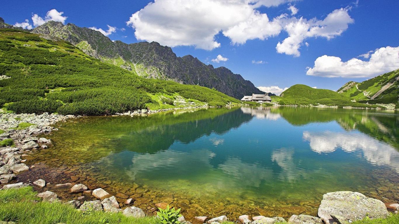 » Обои Дом на берегу горного озера