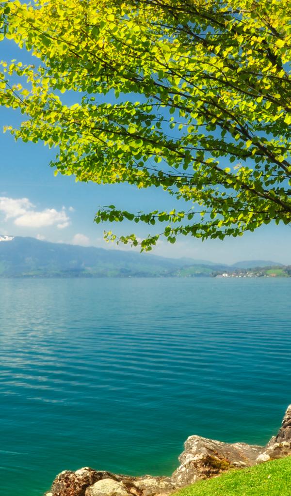 Обои Зеленое дерево на берегу озера