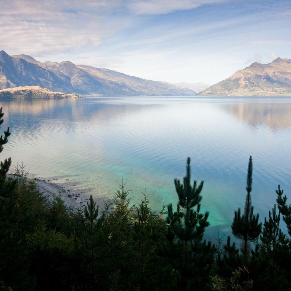 Обои Хвойные деревья на берегу озера
