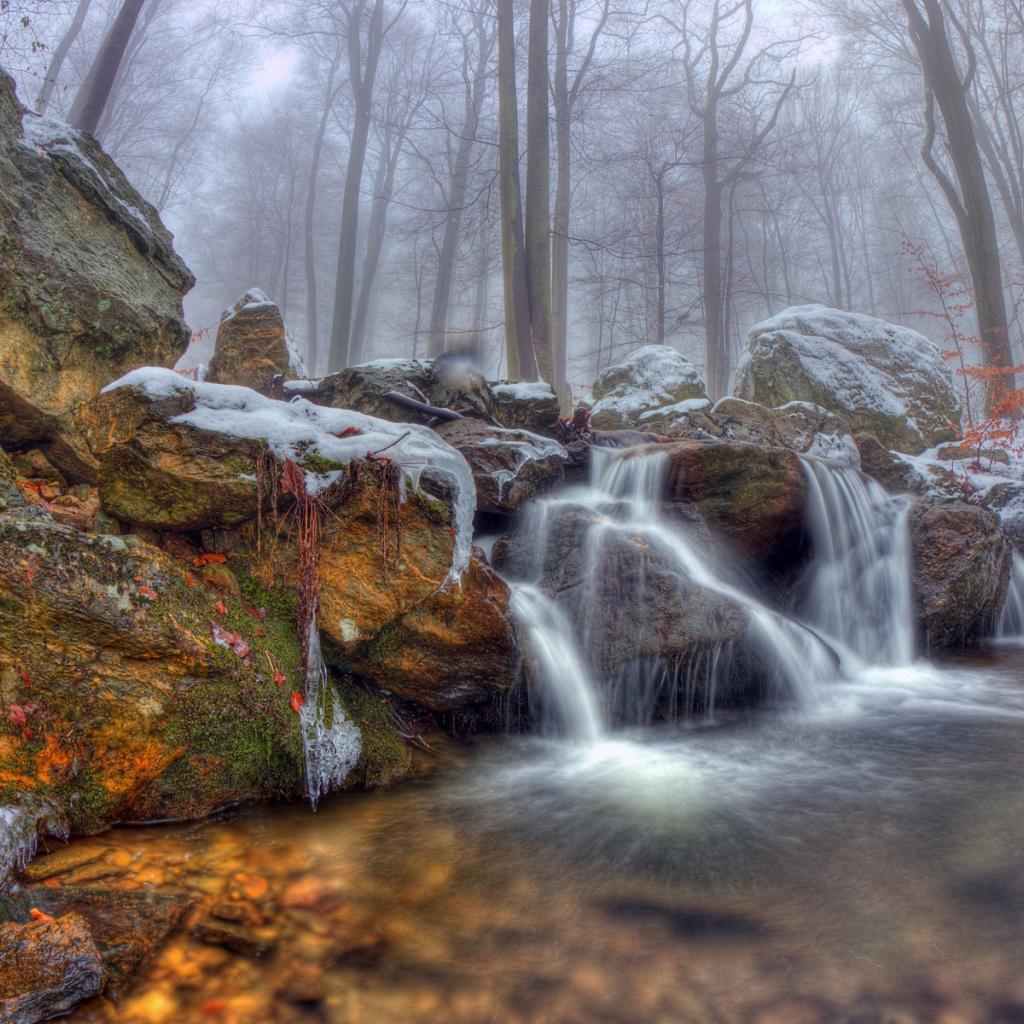 Обои Водопад на фоне туманного леса