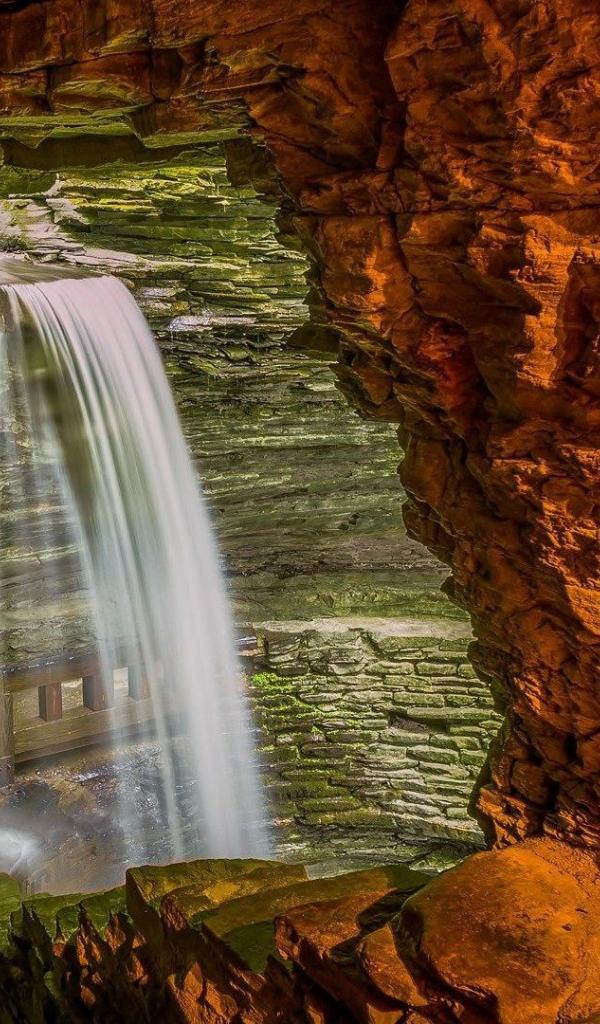 Обои Водопад внутри пещеры