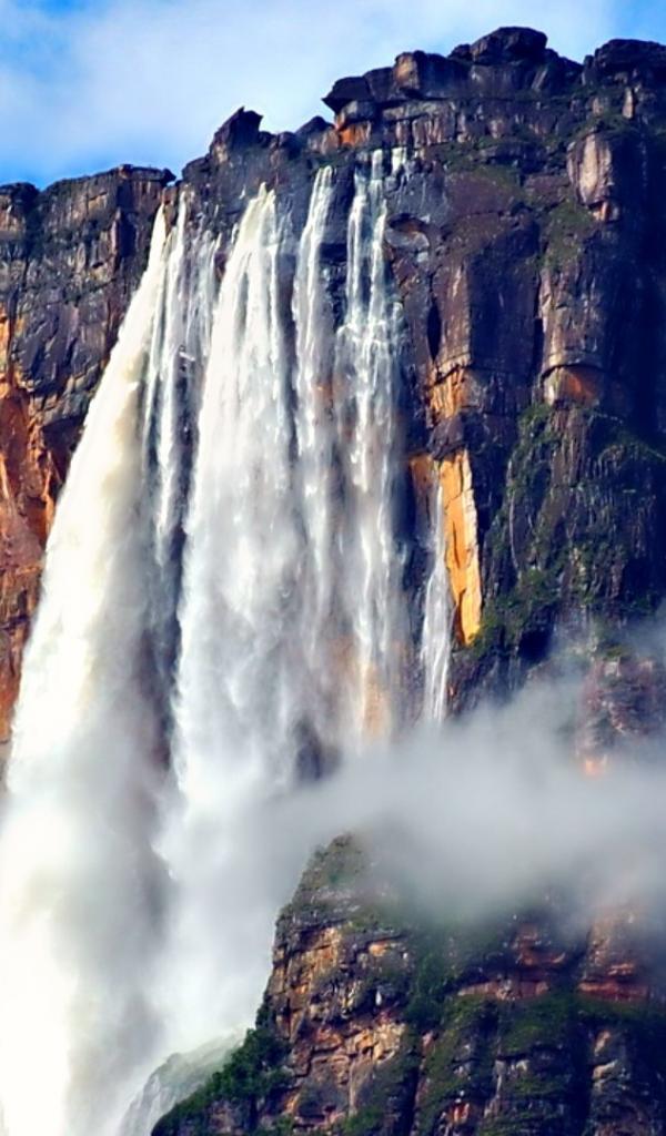 Обои Водопад падает с вершины каменной скалы
