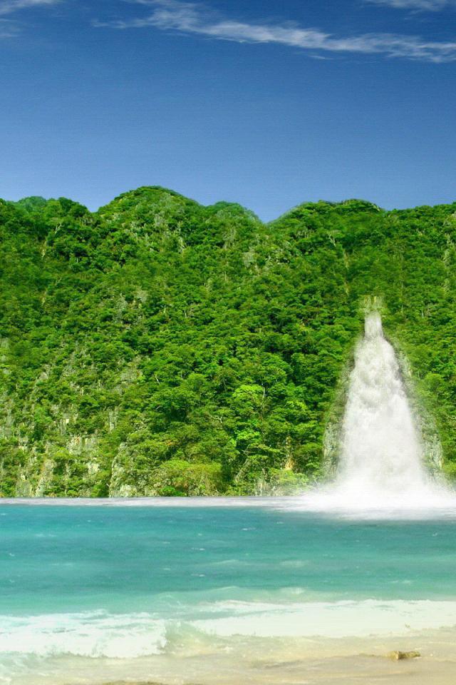 Обои Зеленый берег с водопадами