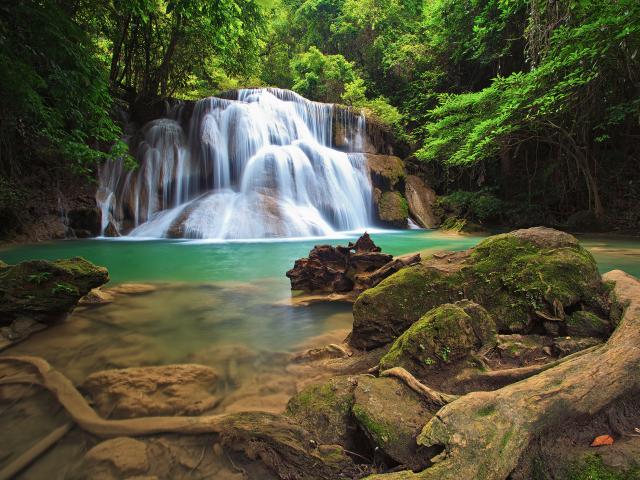 » Обои Водопад в густом лесу