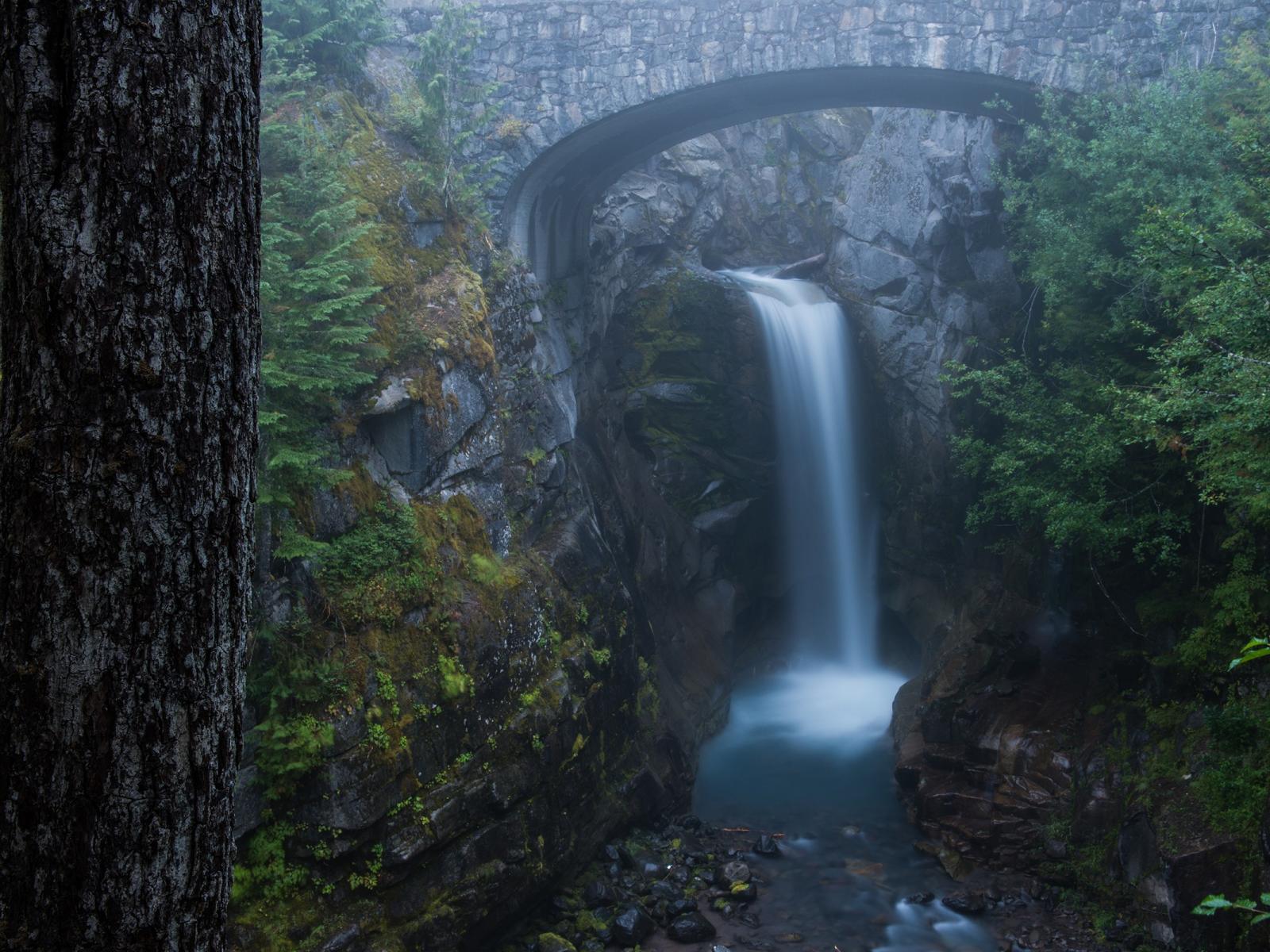 Обои Водопад среди гор