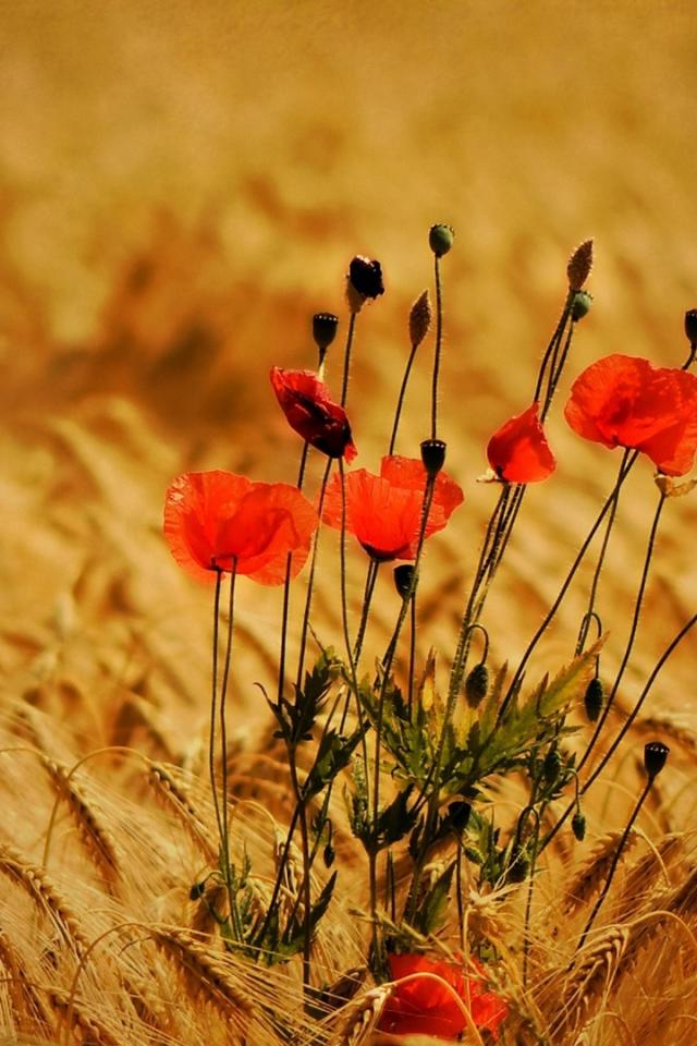 Обои Маки среди пшеницы летом