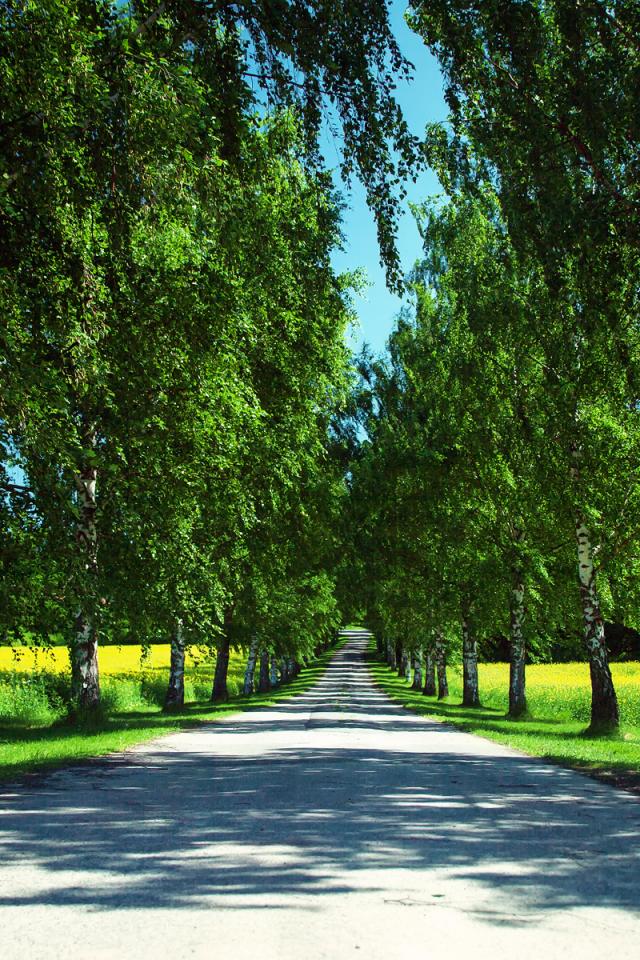 Обои Дорога среди берез летом