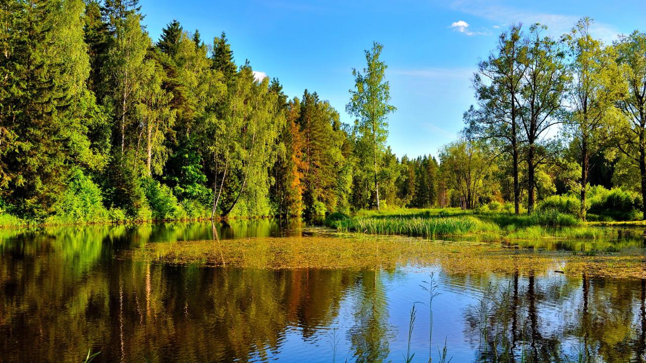 Обои Озеро в летнем лесу