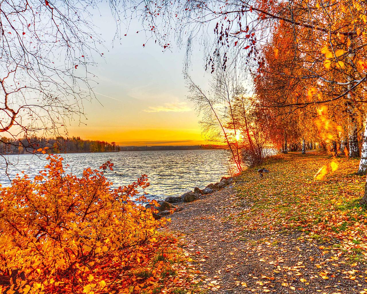 Обои Осенние березы на берегу реки