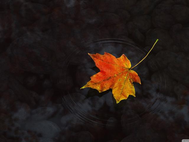 Обои Кленовый листик в прозрачной луже