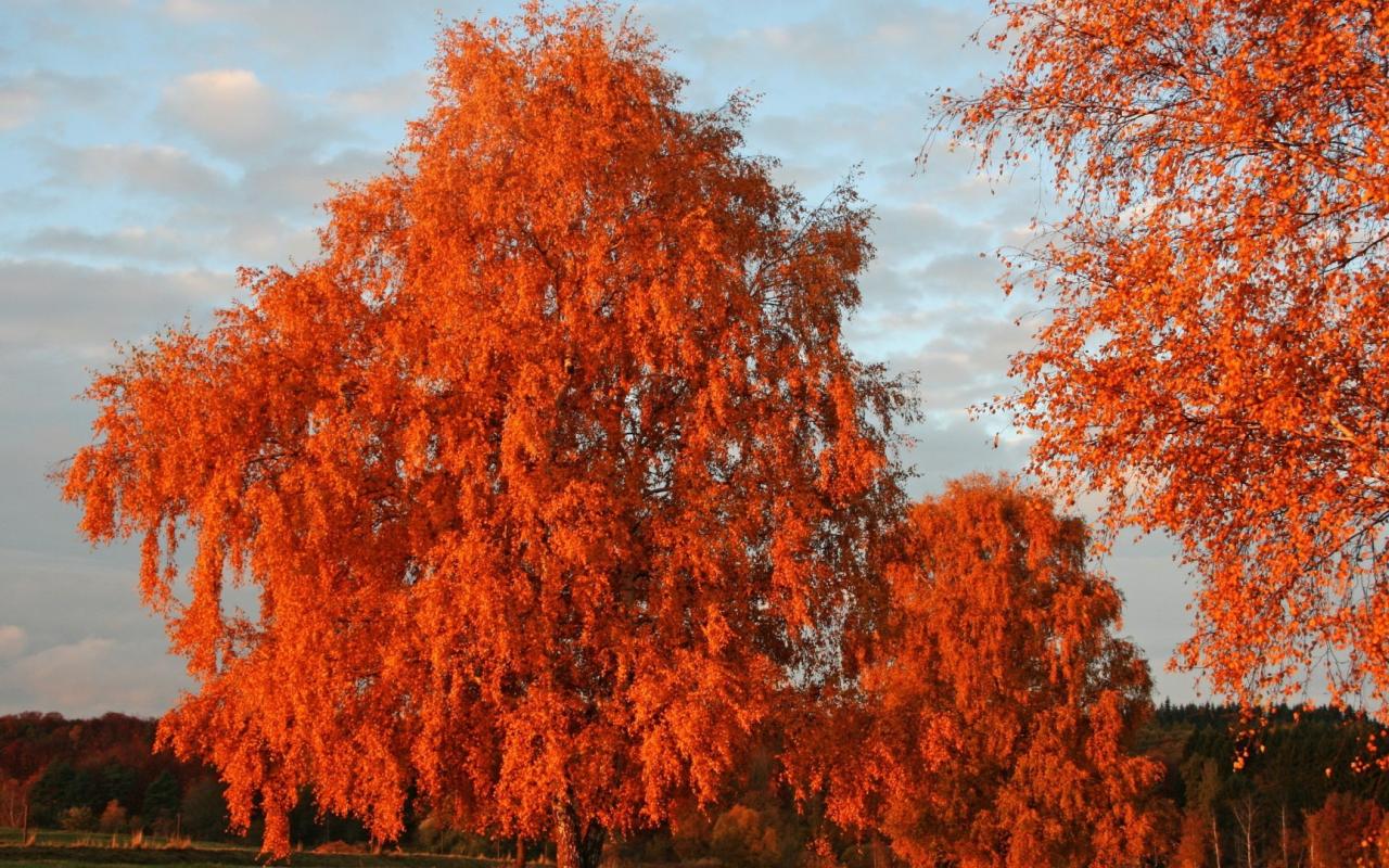 Обои Оранжевая листва на осенних деревьях