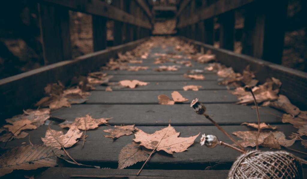 Обои Осенние листья на деревянном мосту