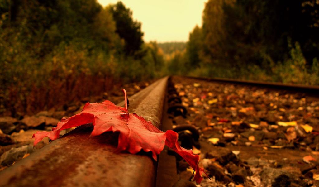 » Обои Осенний лист на рельсе