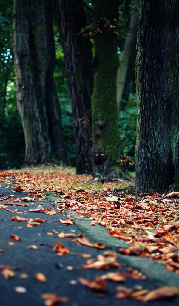 Обои Дорога, Листья, Милая пара, Осенние листья