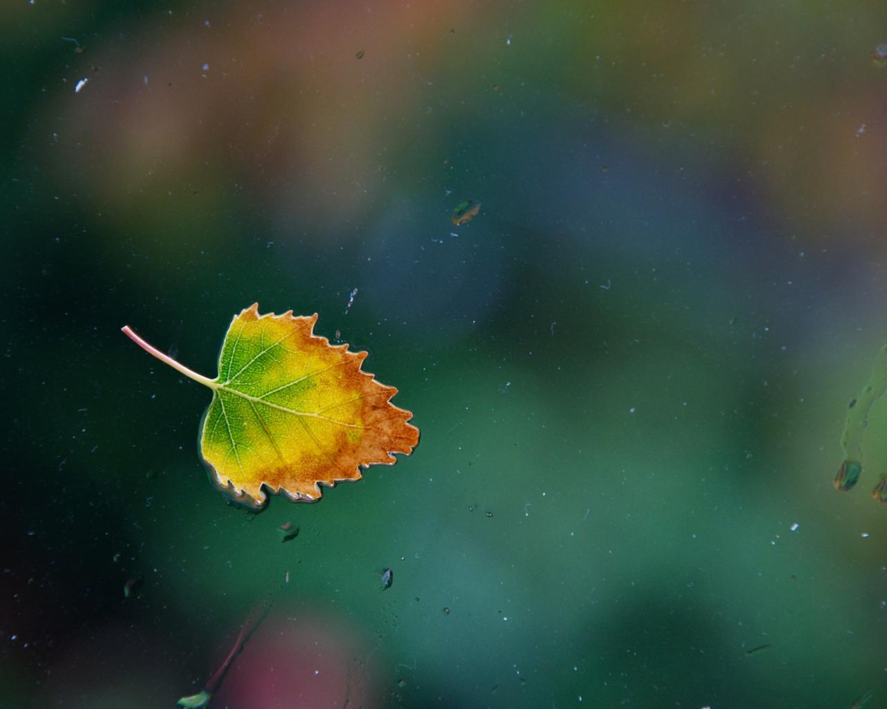 » Обои Осенний лист прилип к стеклу