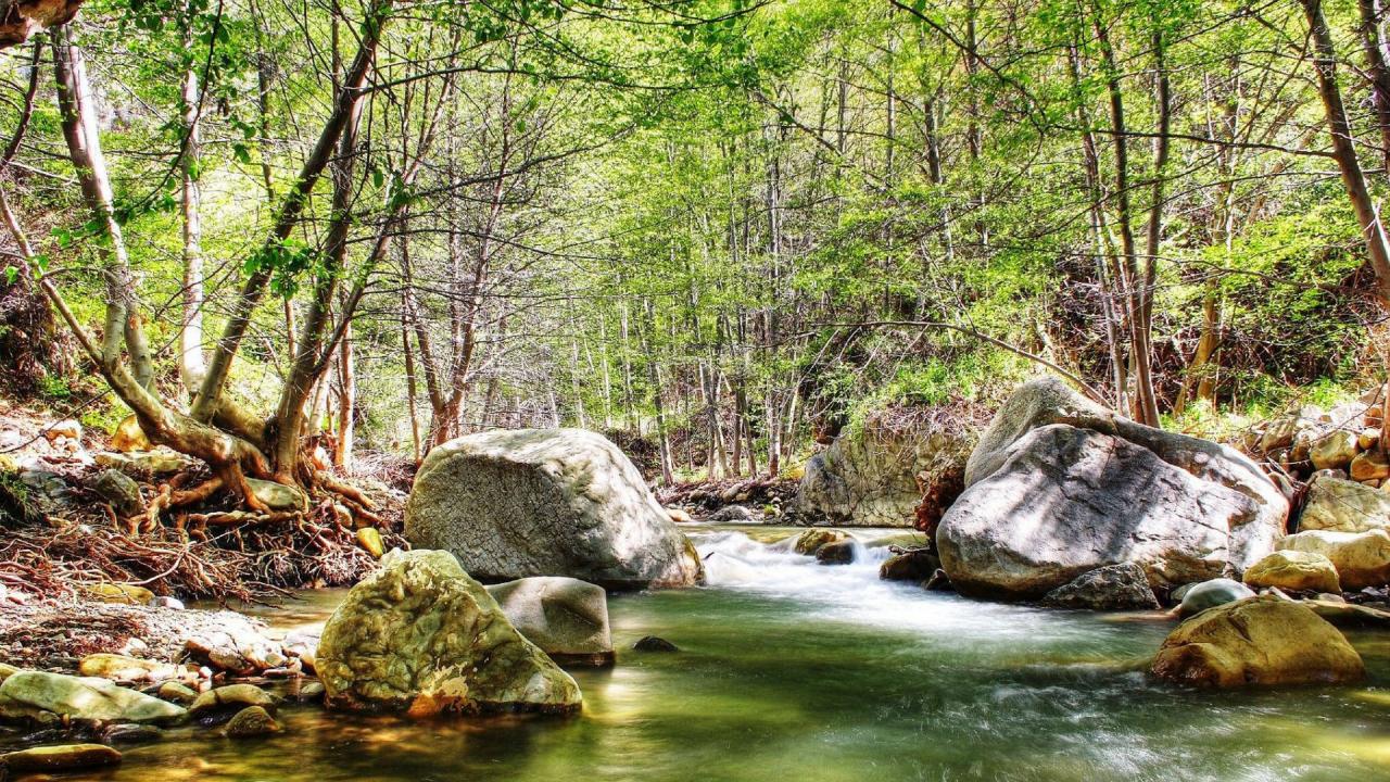 Обои Река в осеннем лесу с камнями