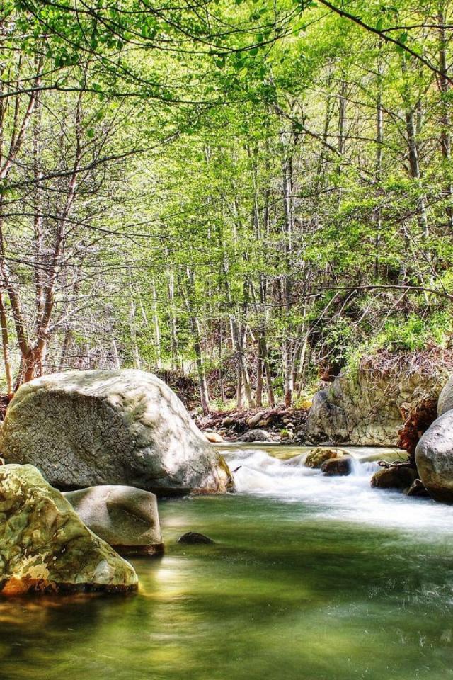 Обои Река в осеннем лесу с камнями