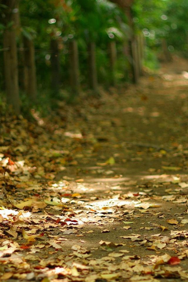 Обои Дорога усыпанная осенними листьями