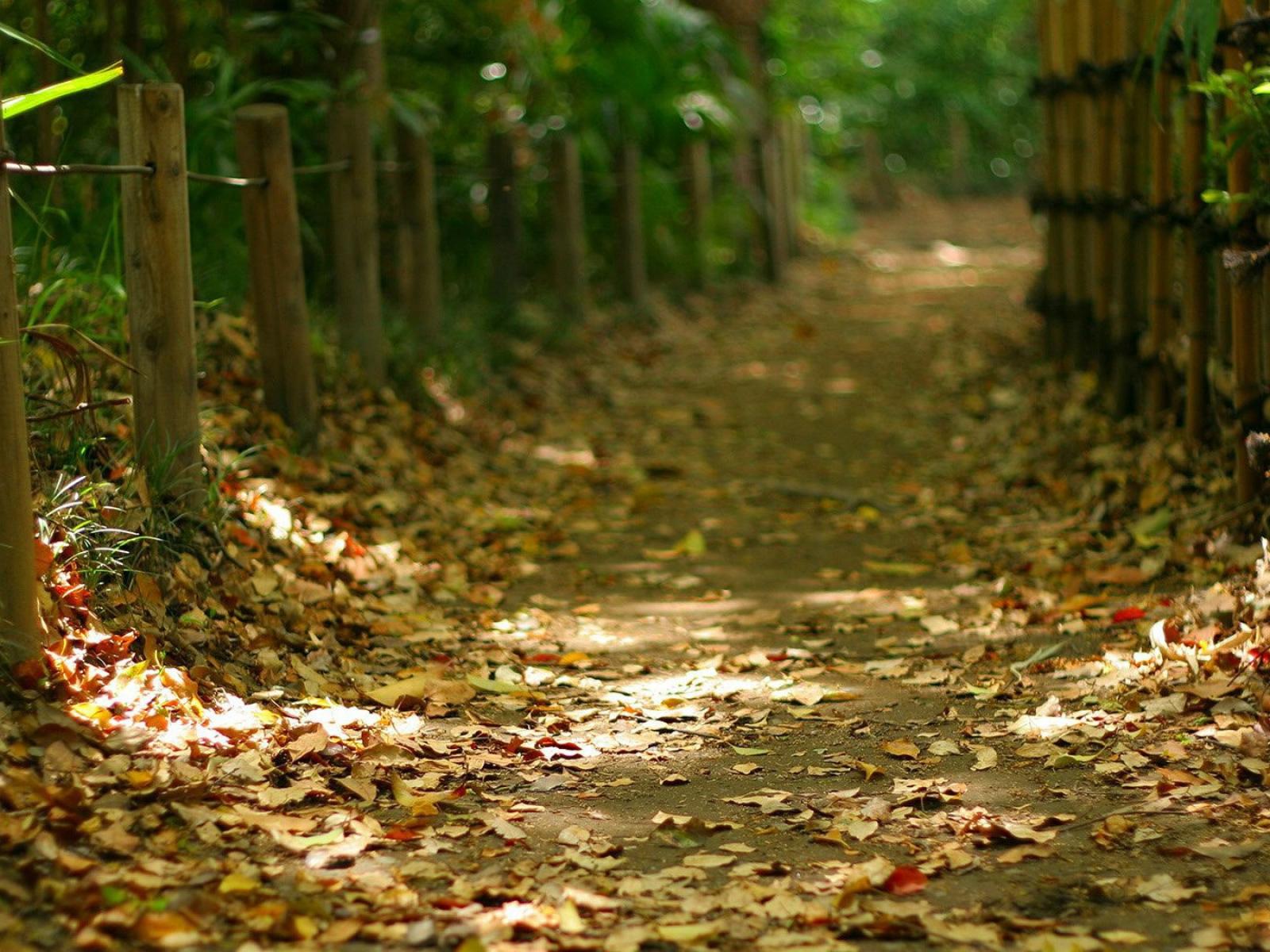Обои Дорога усыпанная осенними листьями