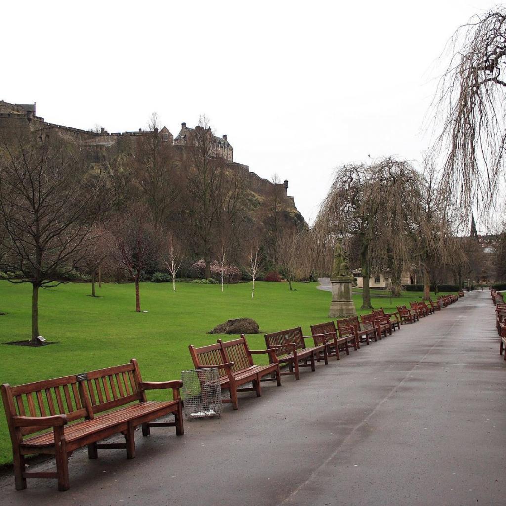 Обои Аллея из скамеек в парке