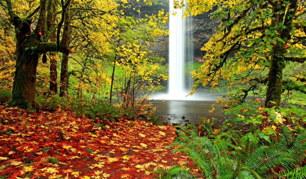 Обои Водопад в осеннем лесу