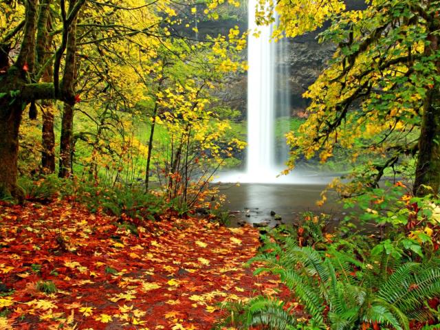 Обои Водопад в осеннем лесу