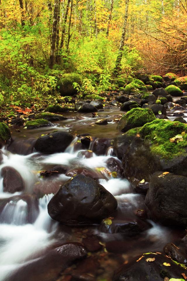 Обои Река течет через осенний лес