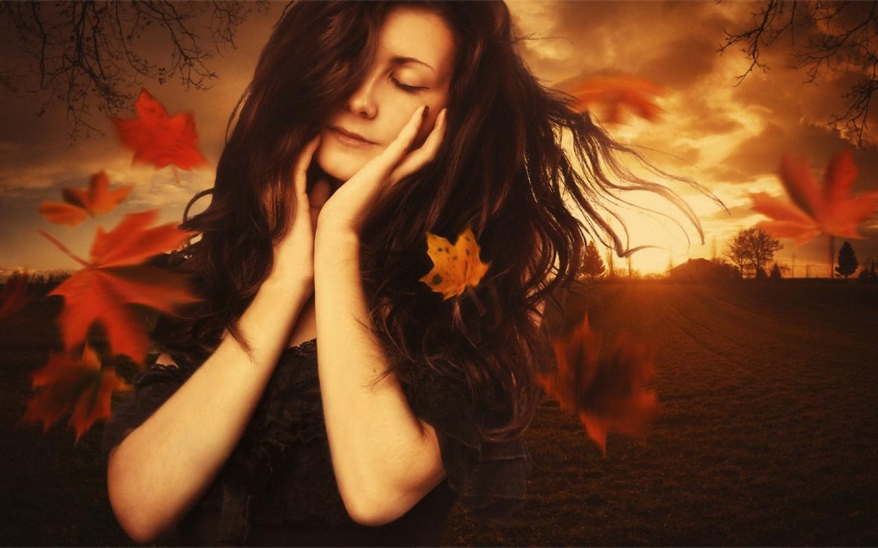 Обои Женщина наслаждается осенью