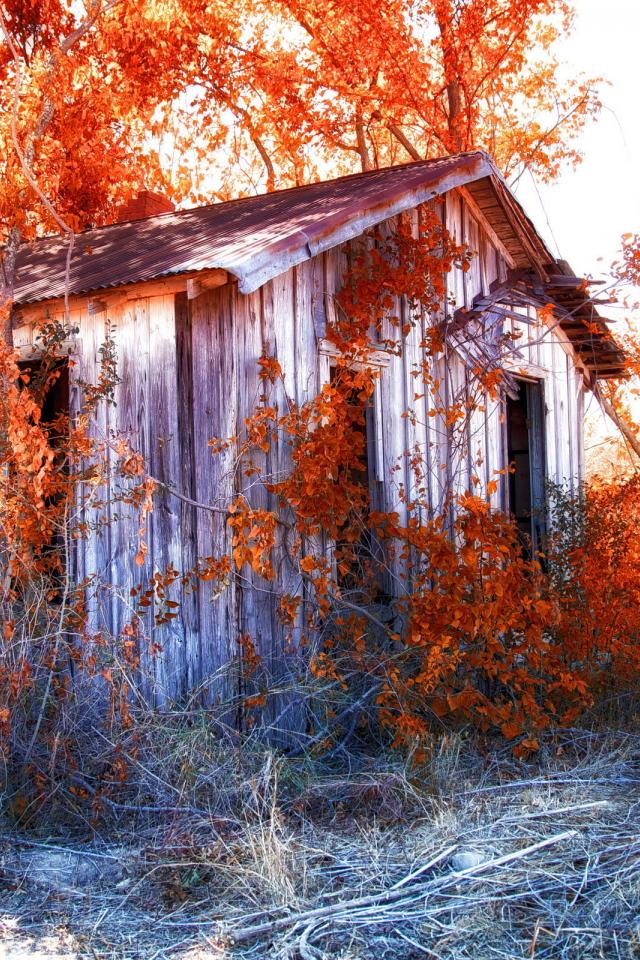Обои Деревья, Листья, Дом, Осенние листья