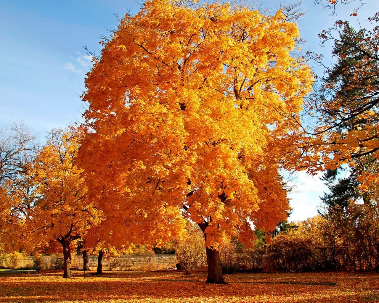 Обои Большие осенние деревья