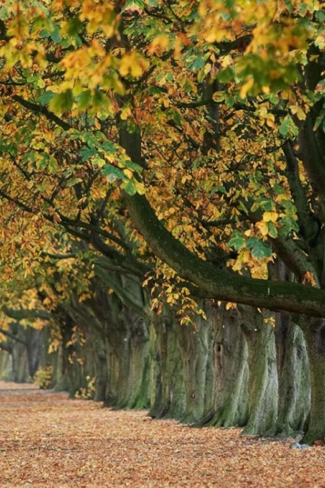 Обои Пожелтевшие листья деревьев